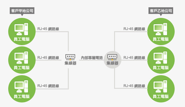願景在海內外建置內部電路(網路專屬點專)擁有多年的建置經驗,包括國際專屬內部電路 (International Private Leased Circuit,IPLC)、VPN(Virtual Private Network) 等都具由多年的豐富申設經驗。