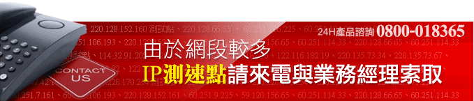 本公司網段同業最多,本公司在中華電信、台灣固網、速博電信、 SeedNet、是方電訊...等,擁有將近50條不同的IP網段,IP網段同業最多,也給客戶最多的優質選擇。當客戶租用實體主機後,如不滿意原先機房,我們可為客戶提供免費性移轉機房一次。獨享頻寬IP歡迎請向專案經理詢問。