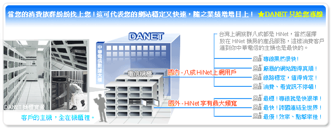 主機代管在DANET的中華電信主機代管機房(www.danet.tw ),