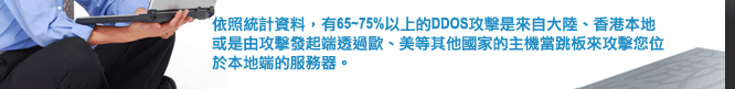 實際上本地端的硬體防火牆卻往往無法100%有效防止大陸來的DDOS攻擊。