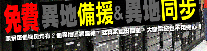 只要您的主機代管在願景任何2個IDC,均能免費