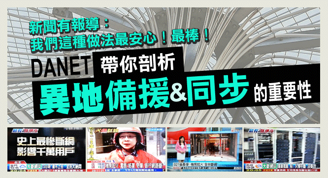 DANET提供不同IDC機房做備份、免費T1網際網路做傳輸。 請洽:0800-018365。http://www.danet.tw。