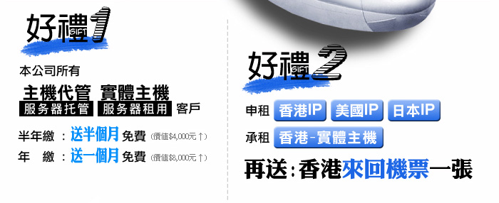 免費送香港機票,申租香港IP、美國IP、日本IP或承租香港實體主機。DANET海外IP熱銷中,成立進入10週年,實體主機和主機代管皆是品牌好口碑
